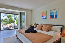 Villa Solis is a luxurious midcentury villa nestled in Les Terres Basses, offering breathtaking mountain views and convenient proximity to several beautiful beaches. Overall, Villa Solis offers a luxurious retreat with stunning views, modern amenities, and convenient access to nearby attractions, making it an ideal choice for travelers seeking an unforgettable vacation experience in Les Terres Basses. Here's a summary of its features: Accommodation: The villa boasts seven spacious bedrooms and eight bathrooms, ensuring ample space and comfort for guests. Bed linen and towels are provided for convenience. Amenities: Guests can enjoy various amenities including a private pool, a garden, barbecue facilities, and free WiFi. The property also offers free private parking for guests' convenience. Entertainment: The villa features a flat-screen TV with streaming services, allowing guests to unwind and enjoy their favorite shows. A terrace with stunning sea views provides a picturesque spot for relaxation. Comfort: Air conditioning is available throughout the villa, ensuring a comfortable stay even during warmer weather. Additionally, there's a seating area and a fully equipped kitchen for guests' convenience. A washing machine and eight bathrooms with walk-in showers add to the comfort. Recreational Activities: The villa offers yoga classes on-site for guests looking to unwind and rejuvenate. Additionally, guests can partake in activities such as snorkeling and hiking in the surrounding area. Nearby Attractions: Baie Rouge Beach is conveniently located approximately 1.1 km from the villa, while Baie Longue Beach is around 1.3 km away. Baie aux Prunes Beach is also within reach at a distance of 2.1 km. Accessibility: The nearest airport, Princess Juliana International Airport, is situated just 4 km from Villa Solis, providing easy access for travelers. Bedroom 1: King-size bed, A/C, closet, patio, safe, TV, WiFi and en-suite bathroom with shower, double vanity, and WC. 2 guests maximum. Adjacent to bedroom 2. Bedroom 2: King-size bed, A/C, closet, patio, safe, TV, WiFi and en-suite bathroom with shower, double vanity, and WC. Adjacent to bedroom 1. Bedroom 3: King-size bed, A/C, closet, patio, safe, TV, WiFi and en-suite bathroom with shower, double vanity, and WC. Adjacent to bedroom 4. Bedroom 4: King-size bed, A/C, closet, patio, safe, TV, WiFi and en-suite bathroom with shower, double vanity, and WC. Adjacent to bedroom 3. Bedroom 5: King-size bed, A/C, coffee maker, dresser, fridge, kettle, patio, safe, TV, WiFi and en-suite bathroom with shower, double vanity, and WC. Bedroom 6: King-size bed, A/C, coffee maker, couch, fridge, kettle patio, safe, TV, WiFi, walk-in closet and en-suite bathroom with shower, double vanity, and WC. Bedroom 7: King-size bed, A/C, closet, coffee maker, fridge, kettle, patio, safe, TV, WiFi, TV and en-suite bathroom with shower, double vanity, and WC.